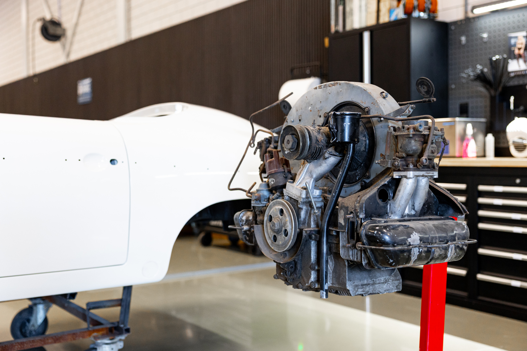 Wij streven altijd naar behoud boven vervanging. Waar mogelijk herstellen wij originele onderdelen, zodat het karakter en de waarde van de auto intact blijven. Elk detail wordt beoordeeld op authenticiteit, functionaliteit en esthetiek.